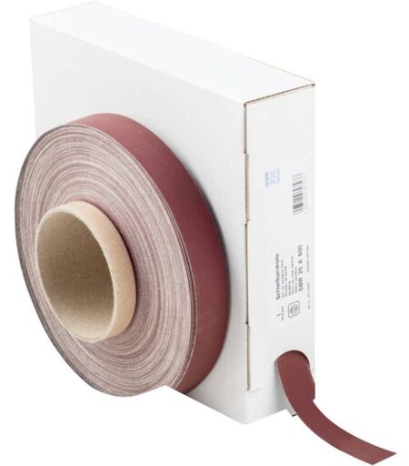 Dettagli tecnici Dimensione dei grani 600 Dimensione del prodotto, larghezza 25 mm Dimensione del prodotto, lunghezza 50 m Dimensione, Ø 171 mm Ulteriori dati tecnici Ø foro 75 mmAbrasivo A Ø foro: 75 mmAbrasivo: A Rotoli di carta abrasiva Adatto per la smerigliatura manuale su tutti i tipi di materiali. La fornitura avviene in cartone con bordo di strappo, in modo che i nastri abrasivi possano essere separati in base alle necessità sul posto di lavoro. SBR 25, SBR 40 e SBR 50 sono conformi alla forma B, ISO 3366. SBR 100 è conforme alla forma A, ISO 3366.abrasivo: Corindone A. Tipi di azionamento: - Inserto per mano Applicazioni: – Rallo– Lavorazione superficie– Pulisci- Levigatura fine in fasi Materiale: Alluminio– Leghe a base di cobalto– Leghe a base di nichel (p. ES Inconell e Hasteloy)BronzoTitanio– Leghe di titanioRame- OttoneZinco- Acciaio inox– Ghisa grigia/sferoidale (GG/GJL, GGG/GJS)– Pressofuso– Termoplastica– Termoindurente rinforzato con fibre (GfK, CFK)– Acciai temprati ...