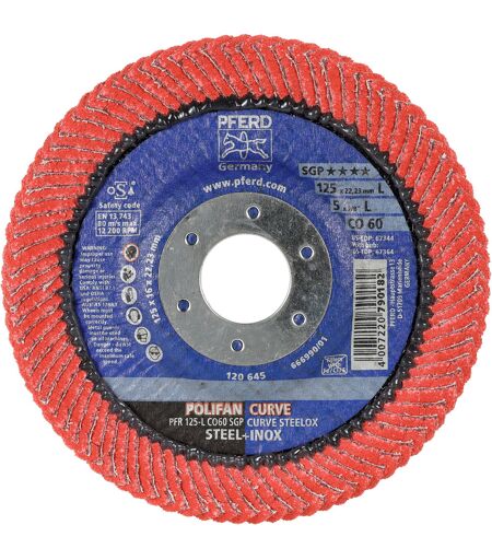 PFERD - Disco abrasivo lamellare per INOX, POLIFAN CURVE (CER) confronto granulometrico 180