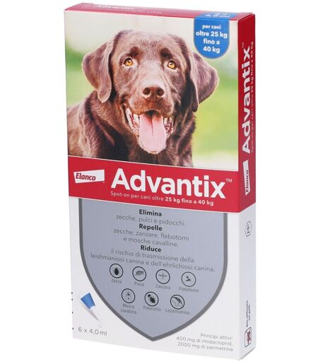 Elanco Italia Spa Advantix Spot On per Cani da 25-40 Kg - 6 Pipette - Protezione Antiparassitaria Efficace