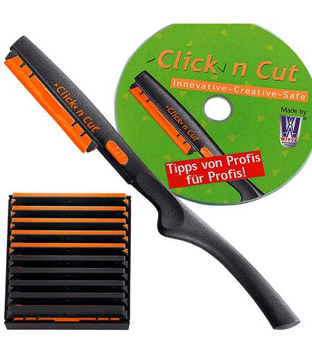 Il set è composto da: un supporto, nero/arancione, un dispenser con 5 modelli e 5 lame da taglio e un DVD informativo con informazioni per l'utente. ...
