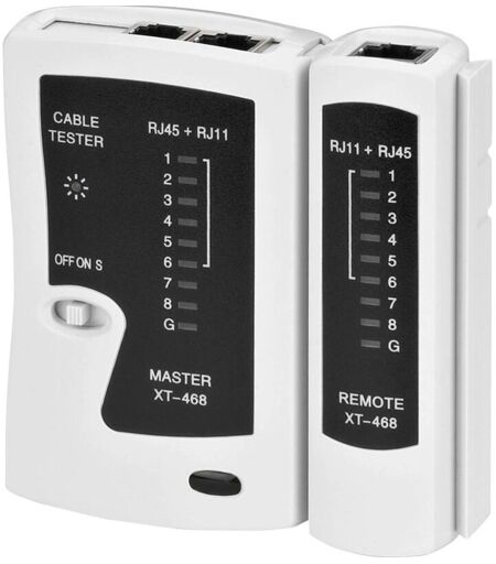Dettagli tecnici Funzioni (Cvao) Passaggio Ulteriori dati tecnici Peso netto 0,132 kg Temperatura di utilizzo consentita 0-40 °C Peso 132 g Peso lordo 0,166 kg. Alimentazione Batteria a blocco da 9 V. Collegamenti RJ45 / RJ11 Tipo Tester di linea Adatto per Linee di rete CAT-5, CAT-6 e ISDN Tipo Test di continuità di linee di rete Peso netto: 0,132 kg Temperatura di utilizzo consentita: 0-40 °C Peso: 132 g Peso lordo: 0,166 kg. Alimentazione: Batteria a blocco da 9 V. Collegamenti: RJ45 / RJ11 Tipo: Tester di linea Adatto per: Linee di rete CAT-5, CAT-6 e ISDN Tipo: Test di continuità di linee di rete CAT-1TEST tester di linea Tester di linea Per il controllo della continuità di linee CAT-5, CAT-6 e ISDN Test di collegamento con display a LED per 8 conduttori singoli e rilevamento della schermatura di continuità, assegnazione errata, interruzione, cortocircuito, cavo incrociato e compatibilità di messa a terra con i seguenti connettori modulari: RJ45 (8P8C), RJ12 (6P6C), RJ11(6P4C, ...