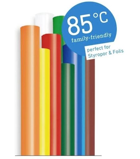 Dettagli tecnici Colore Colorato, Rosso, Giallo, Verde, Arancione, Bianco, Marrone, Nero Dimensione del prodotto, lunghezza 150 mm Dimensione, Ø 7 mm Peso 96 g Temperatura di fusione 85 °C Stick di colla 85°C Ø 7 mm L'adesivo colorato da 85°C per collegamenti colorati con bassa temperatura. Ideale Ideal per la lavorazione e la decorazione anche con materiali sensibili alla temperatura. Adesivo privo di solventi con una resistenza iniziale dopo 15 secondi. Testo tradotto automaticamente Punti di forza e dettagli Temperatura di fusione 85 °C. Stabile alla temperatura 0 - 40 °C. Tempo di apertura 15 s. Tempo di rilegatura 40 s. Privo di solventi Requisiti di sistema Utilizzabile per: Vetro, gomma, legno, ceramica, pelle, carta, cartone / cartone, tessuti, pellicola, polistirolo ...