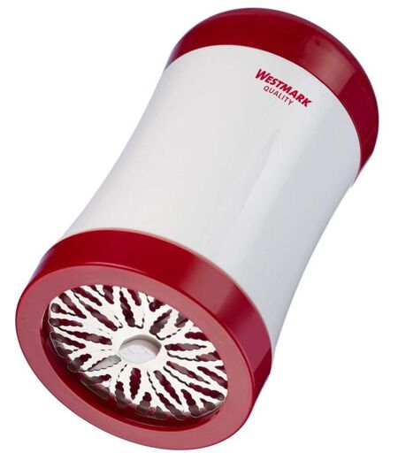 Pratico macinino per sminuzzare erbe aromatiche fresche, essiccate o congelate per marinature, salse, condimenti e guarnizioni, Include grattugia per formaggi a pasta dura per grattugiare mentre si cucina o in tavola - Erbe aromatiche: 2 dischi - Riempimento semplice, Taglio senza sforzo ruotando la testa rossa in entrambe le direzioni, in questo modo i 2 dischi si muovono in modo ottimale senza schiacciare le erbe - Formaggi a pasta dura: 1 disco per grattugiare - Taglio senza sforzo ruotando la testa rossa in una sola direzione, Pratico corpo cilindrico per un uso facile e una buona presa - Durevole, Lavorazione robusta, Facile da pulire, Può essere smontato per una pulizia più accurata, Lavabile in lavastoviglie, Lavaggio a mano dei dischi consigliato per garantire la longevità delle lame - Contenuto: 1x Macinino per erbe Westmark, Dimensioni: 7,5 x 7,5 x 13,4 cm, Materiale: Acciaio inox/Plastica (ABS), Colore: Bianco/Rosso, 11602260. ...