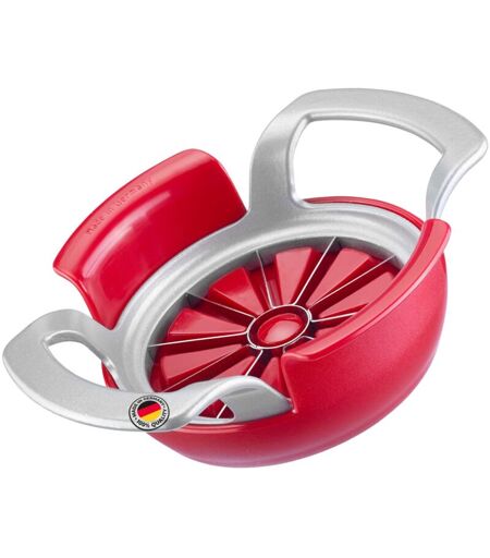 Affettamela/pera per tagliare facilmente mele e pere in 10 parti uguali togliendo il centro, Per frutta con diametro massimo 9 cm - Per tagliare senza sforzo, in poco tempo e senza sporcare mele e pere, Toglie anche il cuore centrale, Lame in acciaio inox molto affilate - Facile da maneggiare grazie ai manici grandi e tondi in alluminio rivestito, Base a piattino per assicurarsi che tutta la frutta sia ben tagliata - Made in Germany, Lunga durata, Lavabile in lavastoviglie, Lavaggio a mano consigliato per preservare il filo delle lame - Contiene: 1x Westmark Affettamela/pera con piattino, Divisorex-Spezial, Dimensioni: 17 x 14 x 5 cm (PxLxH), Peso: 259 g, Materiale: Alluminio rivestito/Acciaio inox/Plastica (ABS), Colore: Argento/Rosso. ...