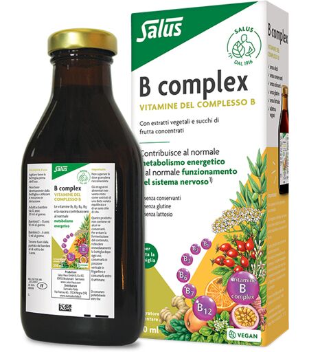 Salus - B complex Vitamine del complesso B - Descrizione Integratore di vitamine B1, B2, niacina, B6, biotina e B12, su una base di estratti vegetali (45 %) e succhi di frutta concentrati (36 %). I nutrienti contenuti in Salus B complex sono già disciolti e quindi sono assorbiti rapidamente dal sis… ...