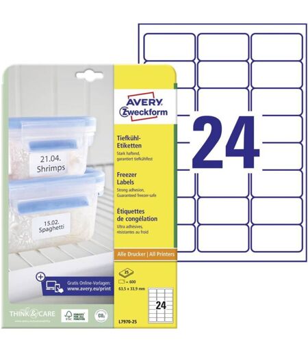 LIDERPAPEL Avery-Zweckform L7970-25 Etichetta per congelatore 63.5 x 33.9 mm Carta Bianco 600 pz. a tenuta permanente Stampante a