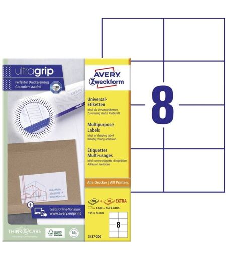 Avery Zweckform 3427-200 Etichetta universale 105 x 74 mm Carta Bianco 1760 pz. A tenuta permanente Stampante laser a c