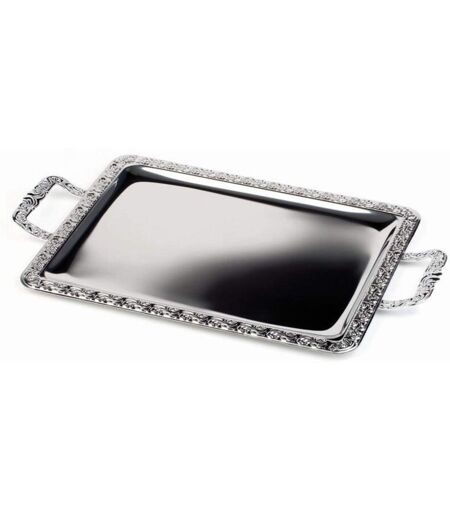 APS Vassoio Schöner Essen, aiutante per buffet, vassoio in acciaio inossidabile 18/0 con bordo decorativo, manici in zinco pressofuso, cromato,