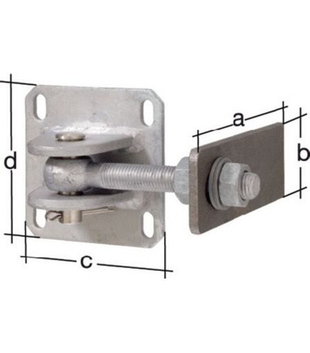 Regolabile su tre livelli · Piastretta di saldatura Materiale: acciaio · Bullone di collegamento e anello di sicurezza Materiale: acciaio inossidabile · Piastra, asta filettata, viti, dadi e rondelle Finitura: zincatura a caldo per saldatura ...