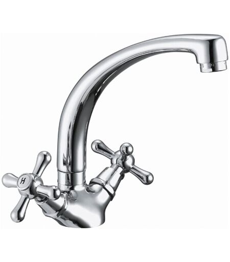 SCHLÄFER 3460412 Rubinetto Retrò con Due Manopole per Lavello Cucina, Bocca Girevole Alta, Gruppo Monoforo in Stile Antico, Finitura Cromo e Argento -