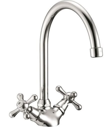 SCHLÄFER - 3460409 Rubinetto da Cucina con Due Manopole Antiche, Canna Alta Universale Girevole in Stile Vintage 'Ombrello', Tecnologia Anticalcare,