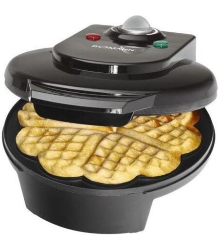 Bomann Wa 5018 - Macchina per waffle a forma di cuore, piastra da 18 cm, piastra antiaderente, termostato regolabile, 1200 w, colore bianco -