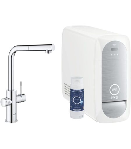 GROHE Blue Home Starter kit composto da: Miscelatore monocomando per lavello con sistema filtrante dell‘acqua. La bombola di CO2 da 425 g non è inclusa nella confezione e deve essere ordinata separatamente. ...