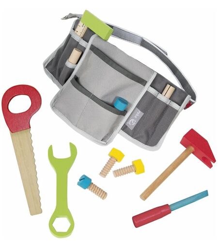 roba Cintura porta attrezzi per bambini, Inclusa borsa porta attrezzi con set di 11 pezzi in legno, Regolabile, Grigio -