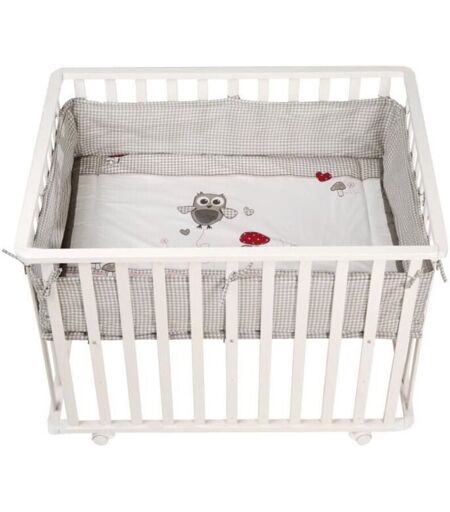 roba Parco per Bambini 100x75 cm + Tappeto Adam e Gufo Stampato + 4 Ruote - - Legno bianco