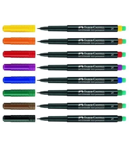 Marcatore universale ideale per scrivere su tutte le tipologie di carta - normale e speciali - e su tutte le superfici sintetiche - CD, lucidi, fotografie, vetro, metallo, ecc. Disponibile in due versioni: permanente e solubile in acqua. -Disponibile in 8 colori solubili o permanenti. -Il MULTIMARK Faber-Castell è disponibile in 8 colori brillanti: giallo, arancione, rosso, viola, blu, verde, marrone e nero. -Permanente e resiste alla luce. -Lo speciale gommino, posizionato sul fondo del marcatore, permette di cancellare l’inchiostro permanente dalle superfici lisce. -Disponibile in tre larghezze di tratto: S, F, M. -Inoltre come non permanente (solubile in acqua), può essere rimosso dalle superfici regolari semplicemente con acqua . ...