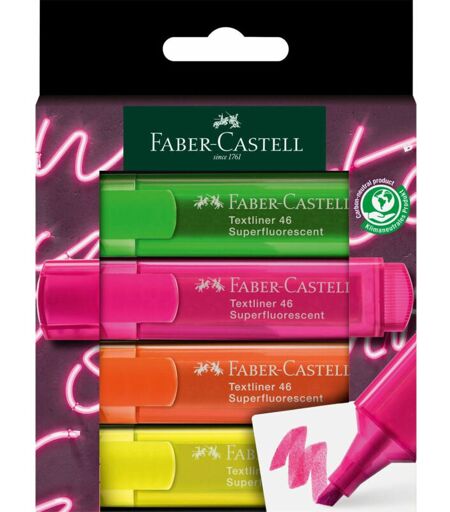 Faber Castell Faber-Castell 254600 evidenziatore 4 pz Punta smussata Verde, Arancione, Rosa, Giallo