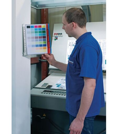 Durable - Supporto da parete 10 pannelli display rosso/blu din A4 su pellicola dura