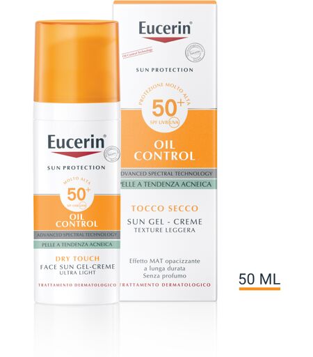 Eucerin Sun Oil Control Gel Crema Dry Touch SPF50+ - Protezione solare viso tocco secco - 50 ml - - Eucerin Sun Oil Control Gel Crema Dry Touch SPF50+ è specificamente formulato per la protezione solare molto alta del viso con pelle grassa ed a tendenza acneica. Combina una protezione contro i dann… ...