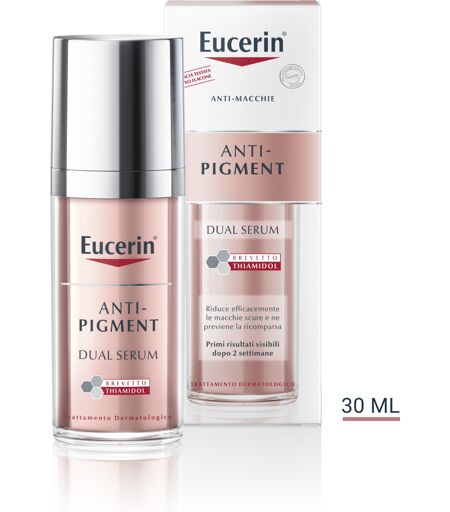 Eucerin Anti Pigment Dual Serum - Siero viso anti macchie - Eucerin Anti Pigment Dual Serum Trattamento dermatologico, agisce alla base dell'iperpigmentazione. La Melanina è un pigmento naturale che dona colore alla pelle. L'esposizione alla luce del sole, i fattori ormonali e l'invecchiamento poss… ...