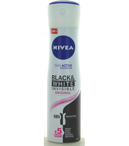 Nivea Deodorante Black & White Invisible Original Spray regola la traspirazione per 48 h e contrasta odori, sudore, residui, irritazioni e macchie. ...