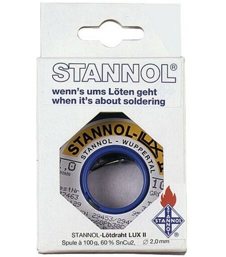 Elettronica Lot-940346 SB Con flusso colophonium attivato senza alogeni I residui di flusso sono trasparenti, asciutti e solidi e non hanno un effetto corrodente ISO 9453:2006 S-Sn60Pb39Cu1, IEC 61190-1-3 ROL0/1.1.3. B Con 3,5% Content Delivery: bobina da 100 g in 1,5 mm in cartone self-service. ...
