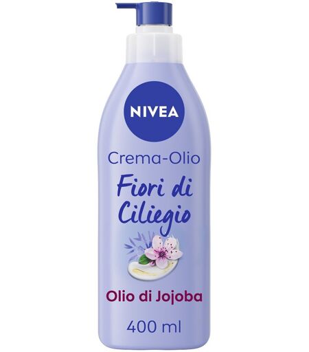 Nivea Crema-Olio Fiori di Ciliegio & Olio di Jojoba 400 ml, Crema corpo idratante 48h e profumataNivea Crema-Olio Fiori di Ciliegio & Olio di Jojoba – Morbidezza avvolgente e delicata fragranza per la tua pelle Avvolgi la tua pelle con una delicata fragranza floreale con Nivea Crema-Olio Fiori di Ciliegio & Olio di Jojoba! In questo latte per il corpo, il dolce profumo di Fiori di Ciliegio che risveglia i tuoi sensi a ogni utilizzo incontra il prezioso Olio di Jojoba 100% naturale in una morbidissima crema, per una pelle liscia e luminosa. La crema corpo dona una sensazione immediata di morbidezza avvolgente e pelle vellutata mentre nutre la tua pelle per 48 ore. Inoltre, la sua texture leggera non unge e si assorbe rapidamente. Compatibilità cutanea dermatologicamente comprovata.Vantaggi del prodotto:48h idratazioneFragranza di Fiori di CiliegioOlio di Jojoba 100% naturaleSensazione immediata di pelle vellutataNon appiccica e si assorbe rapidamenteFlacone realizzato al 50% con plastica riciclata**escluso l'erogatoreModo d´uso:Applicare generosamente la crema su tutto il corpo e massaggiare fino a completo assorbimento.Ingredienti:Aqua, Alcohol Denat., Glycerin, Isopropyl Palminate, Glyceryl Stearate SE, Cetearyl Alcohol, Hydroxypropyl Starch Phosphate, Simmondsia Chinensis Seed Oil, Sodium Cetearyl Sulfate, Xanthan Gum, Gellan Gum, Phenoxyethanol, Citric Acid, Hydroxyacetophenone, Parfum. ...