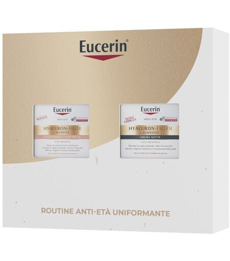 Beiersdorf SpA Eucerin Skincare Kit Routine Anti-Età Uniformante, Cofanetto regalo donna beauty con Hyaluron-Filler + Elasticity Crema Giorno Rosé SPF 30 e Notte per una doppia azione antimacchie 1 pz Set