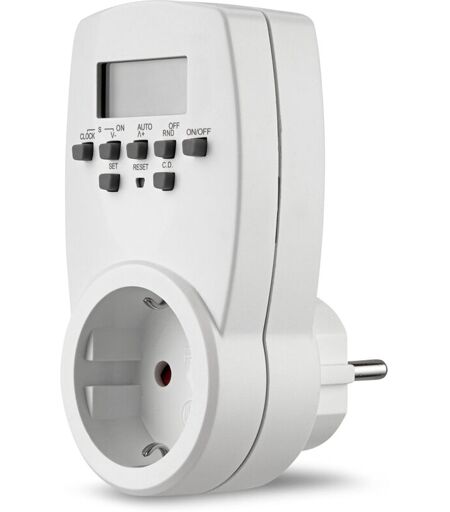 Timer digitale completamente programmabile I temporizzatori o Timer consentono di regolare tramite un orologio il tempo d'esercizio e funzionamento di sistemi o impianti alimentati tramite la normale rete elettrica (220V) per ottimizzare i consumi energetici d'esercizio agendo con efficacia sulla riduzione della bolletta elettrica e contribuendo cosi al risparmio energetico e al rispetto delle risorse naturali. Specifiche Principali Timer Temporizzatore Digitale Massima programmazione Intervalli On/Off 140 x 7 giorni Intervallo minimo programmabile 1 minuto Sistema di programmazione facile ed intuitivo Visualizzazione tempo formato 12H o 24H e ora legale Display LCD per visualizzazioni informazioni Tensione In 230V~, 8,7A Carico massimo Out 2000W Carico massimo induttivo 460VA ~ 2A Alimentato tramite batterie ricaricabili Programmazione memorizzabile massimo 100H Presa Out Schutzkontakt con protezione di sicurezza per bambini Dimensioni 60x105x70mm ...