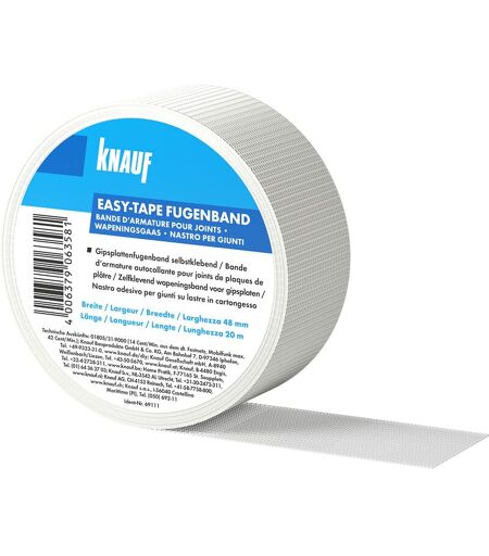 KNAUF K-00069112 Easy-Tape-Nastro di Copertura stabilizzare e stuccare fughe, Striscia di Rinforzo autoadesiva per la stuccatura cartongesso o Pannelli in