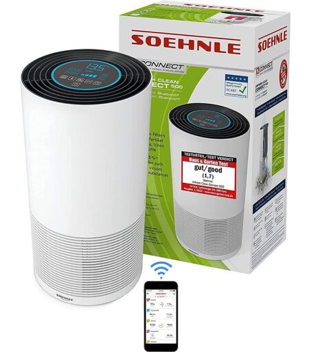 Soehnle Airfresh Clean Connect 500 con purificatore d'aria Bluetooth con connessione app, purificatore d'aria purifica le particelle, purificatore