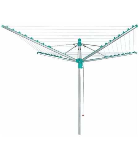 Stendibiancheria ad ombrello Linomatic 400 Easy Leifheit 85285. Ideale per asciugare la biancheria in modo naturale nel vostro giardino o sulla vostra terrazza. Sistema di apertura e chiusura facilitata: Sistema di apertura Easy-Lift con cordino e chiusura con sistema di sblocco sul palo. I fili si stringono automaticamente quando si apre l'asciugatrice. Rimozione automatica dei fili: i fili si ritraggono nei bracci quando l'asciugatrice è chiusa e rimangono protetti da polvere e sporco e rimangono sempre puliti e asciutti. Essiccazione ecologica e naturale. La superficie stesa è di 40 metri, spazio sufficiente per stendere una quantità di bucato equivalente al contenuto di 4 lavatrici. 4 lati da 1,86 m: perfetti per stendere i vostri capi di biancheria di grandi dimensioni: asciugamani, lenzuola o copripiumini. Materiali resistenti agli agenti atmosferici e ai raggi UV. Palo in alluminio anodizzato, diametro 50 mm. Fornito con manicotto di fissaggio in plastica da cementare. Tipo di ...