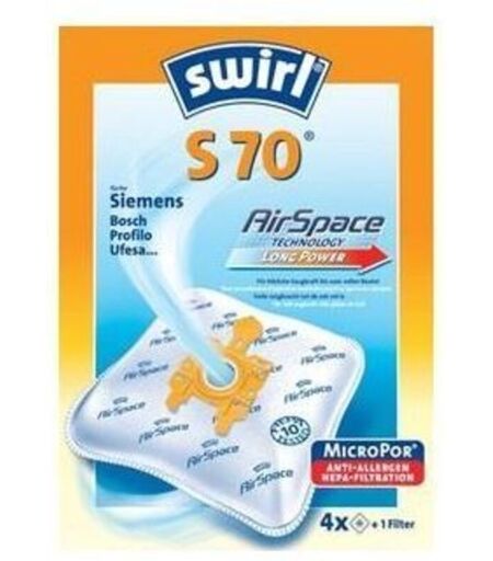 Codice: 191389 Marca: SWIRL. Swirl S 70 AirSpace. Compatibilità: Siemens, Bosch, Ufesa, Profilo. Numero di sacchi per la polvere: 4 pz, Numero di filtri: 1 pz ...