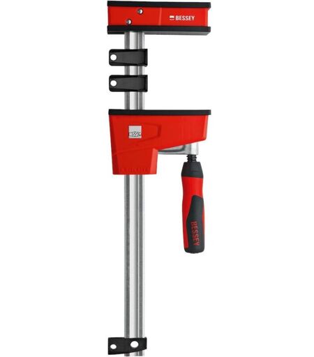 Forza di serraggio fino a 8.000 N Superfici di serraggio parallele molto ampie con 3 cappucci protettivi rimovibili Alloggiamento in plastica con rinforzo in metallo e staffa di scorrimento ottimizzata con sistema antiscivolo doppio, per una potenza e una sicurezza maggiori: la forza di serraggio impostata viene mantenuta e, in stato di assenza di serraggio, non è possibile che la staffa di scorrimento scivoli in modo accidentale Trasformabile senza utensili in distanziatore Raffinata impugnatura in plastica bicomponente con esagono incassato per una comodo applicazione della forza di serraggio (coppia max. 17 Nm) KREV con parte superiore regolabile in modo continuo e fissabile per un posizionamento ottimale sul pezzo Text Le grandi superfici di serraggio parallele sono tipiche dello strettoio manuale REVO e del leggero strettoio manuale UniKlamp originali BESSEY. Grazie a questi utensili è possibile serrare e distanziare senza problemi le superfici delicate e gli angoli retti, nonché ...