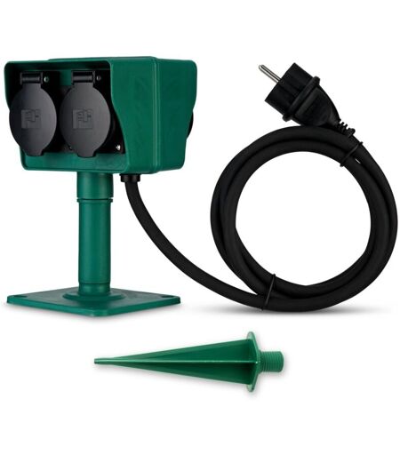 Questa presa esterna è quasi invisibile nel vostro giardino. Grazie al colore verde scuro e nero, questa presa per esterni si fonde con l'ambiente. Il picchetto garantisce un fissaggio sicuro della presa da giardino sul terreno. Grazie alla piastra di base in dotazione è possibile anche il montaggio su terreni solidi. Le 4 prese con contatto di protezione sono protette dagli spruzzi d'acqua (IP44). L'alloggiamento in plastica della presa esterna è robusto e resistente alle intemperie. Il cavo di alimentazione della presa a picchetto è costituito da un cavo gommato con spina di protezione. La lunghezza è di 1,4 m. Fornito con istruzioni multilingue (lingua italiana non garantita). Dettagli tecnici della presa da giardino: Dimensioni (LxPxA): 125 x 119 x 300 mm, Peso: 0,7kg, Cavo di alimentazione: H05VV-F 3G1,5 mm. 230 V, 16 A, 50 Hz, 3500 W. Adatto per lampadine a risparmio energetico. A-E. La scatola per cavi è dotata di sistemi a incastro di tipo F (CEE7/3 e CEE7/4), numero articolo: ...