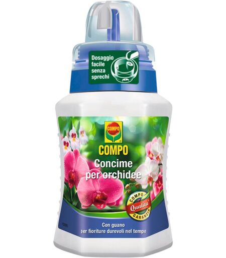 COMPO Concime per orchidee è il concime liquido organo-minerale ideale per le orchidee in vaso, da aiuola ed epifite. La sua speciale formulazione delicata e a bassa salinità è studiata appositamente per piante particolarmente sensibili. Gli elementi nutritivi favoriscono una fioritura rigogliosa e durevole. Composizione: Concime organo minerale NPK in sospensione 3-4-5 con microelementi Modo d'uso: Agitare il prodotto prima dell‘uso. Riempire il tappo dosatore fino al primo indicatore di livello (c), diluire la quantità consigliata in 1 litro d’acqua e innaffiare. Concimare ogni settimana dalla primavera all’autunno; ogni due settimane nel periodo invernale. Con tappo graduato: 1 tacca / 2 litri d'acqua ...