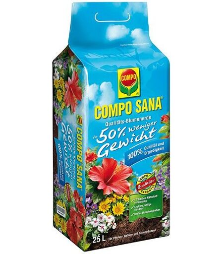 COMPO SANA® Quality Potting Earth - Substrato culturale Con circa il 50% in meno di peso con piena qualità e resa - Trasporto facile e maneggevolezza - Formato compatto con robusta maniglia di trasporto Non c'è bisogno di un allentamento complesso Per un comodo recupero o impianto 12 settimane di approvvigionamento di nutrienti Struttura ariosa grazie ai fiocchi di respirazione PERLITE Con AGROSIL® radice per la migliore crescita delle radici Con la ri-rilascio pratico HYPERLINK™ Uso consigliato: Si raccomanda di allentare leggermente il terreno prima dell'uso. E 'meglio usare un vaso vegetale molto più grande di prima che ha un deflusso dell'acqua. Coprirlo con un frammento di argilla. Riempire il fondo del vaso con il terreno inserire la pianta con la sua balla radice e quindi riempire il vaso fino a 1 cm sotto il bordo e premere saldamente il terreno. Formare un bordo di ingante intorno alla pianta utilizzata e poi acqua ampiamente. ...