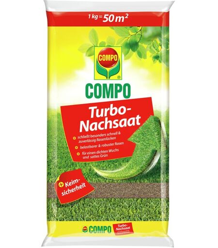 Compo Turbo, semi di prato, chiude in modo rapido e affidabile gli spazi vuoti nel prato, con sicurezza germinale, 1 kg, 50 m²