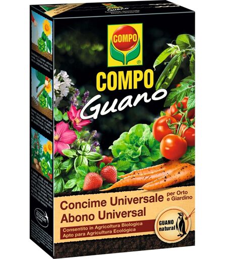 Compo guano universale è un concime con componenti completamente che arricchisce il terreno di sostanze di facile assimilazione e durevoli nel tempo. Grazie a Compo guano le fioriture saranno splendide, gli ortaggi e i frutti saranno più numerosi, con sapore, colore ed aroma ineguagliabili. ...