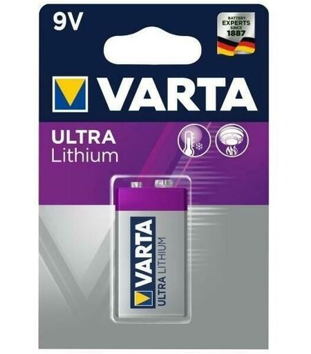 Pila al litio Varta 9V - 06122301401 Batteria al litio non ricaricabile da 9V. Adatta per rilevatori di fumo. Confezione da 1 batteria Tipo: 9 V Block Composizione chimica: Litio Quantità: 1 Voltaggio : 9 V ...