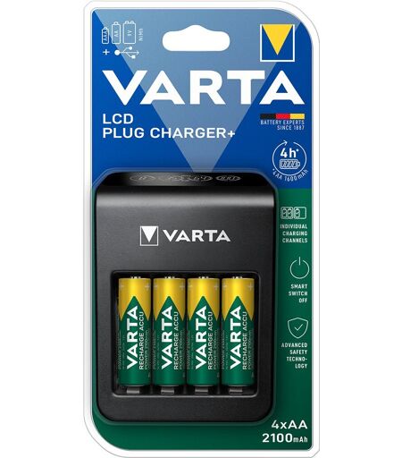 Varta Caricabatterie Lcd Pug+ Con Batterie Aa Da 2100 Mah Black One Size