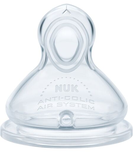 NUK First Choice + Flow Control, 2 pz, Tettarelle di biberon per bambini, La forma della tettarella del biberon NUK First Choice + Flow Control assomiglia a quella del seno materno e quindi viene accettata molto più facilmente dal bambino. Aiuta il bambino a bere più facilmente dal biberon, facilita il passaggio dall’allattamento al seno al biberon e si adatta perfettamente alla bocca del bambino. Caratteristiche: si adatta perfettamente alla bocca del bambino influisce positivamente sul corretto sviluppo della cavità orale del bambino il contenuto non si rovescia ...