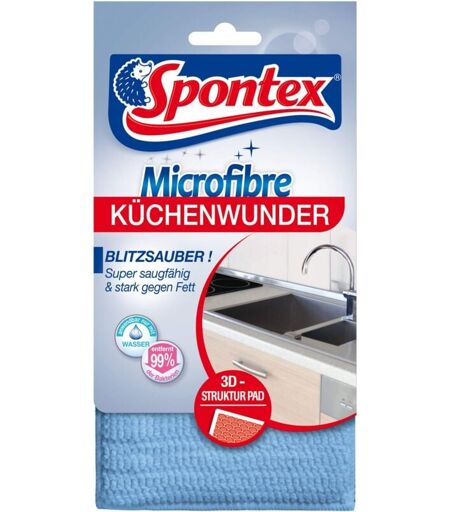 Spontex Panno in microfibra 3D con anima in spugna, ideale per tutte le superfici della cucina, efficace contro sporco e residui di grasso, 1 pezzo -