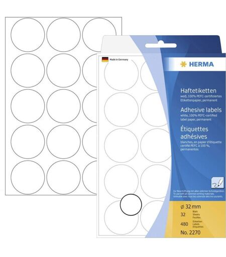 Herma 2270 Etichetta di identificazione a forma di bollino ø 32 mm Bianco 480 pz. a tenuta permanente Carta -