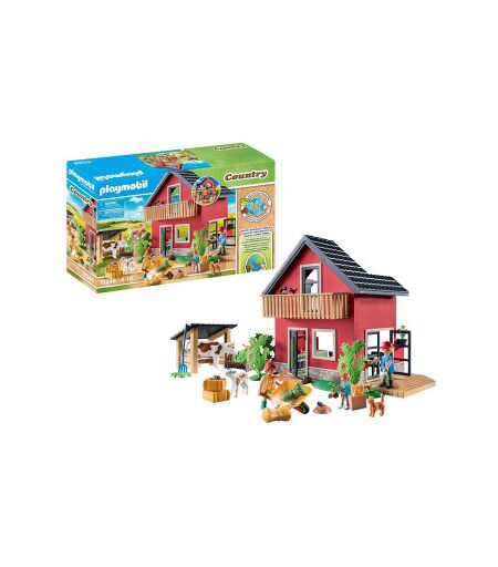 Fattoria con zona giorno e zona notte arredate con cura. Una grande porta finestra al piano terra conduce all'ampio patio. Il set comprende molti animali da accudire. La mucca ha un manto morbido tutto da accarezzare. Una piccola stalla, all'esterno, funge da ricovero per gli animali. Il mondo della fattoria PLAYMOBIL offre un grande divertimento per i bambini che amano la natura. La fattoria e' arredata con cura e tutta la famiglia si sente a casa. Qui si cucina, si vive e si ride. Fate una pausa e rilassatevi sulla piccola terrazza al primo piano. Al mattino e alla sera, la mucca e il vitello vengono nutriti nella stalla e ci si occupa anche di tutti gli altri animali della fattoria. La Piccola Fattoria PLAYMOBIL offre innumerevoli opportunita' di gioco con edifici dettagliati, veicoli realistici e personaggi adorabili che riflettono la vita quotidiana della fattoria. Il set include tre personaggi PLAYMOBIL, una fattoria con ampio patio e arredi, una piccola stalla, una mucca e un vitello, mangime per animali e tanti altri accessori. La mucca ha un manto morbido tutto da accarezzare. Un regalo di compleanno o un ricordo perfetto per i piccoli amanti degli animali. Proteggi l'ambiente: Tutti questi nuovi playset Fattoria del mondo Country PLAYMOBIL sono realizzati con oltre l'80% di materiali sostenibili. ...