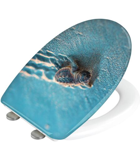 Il sedile del water originale di alta qualità Caretta, in duroplast antibatterico resistente, ha una forma di coperchio ovale che si integra armoniosamente in ogni bagno. Il duroplast antibatterico porta più igiene nel bagno. Particolarmente estetica, l'impressione di tartaruga si integra su entrambi i lati del coperchio del water. Con la graziosa piccola tartaruga marina nell'acqua blu, porti un tocco di natura nel tuo bagno. I rumori fastidiosi e i pizzicotti alle dita sono ormai passati grazie al sistema di chiusura automatica integrato Easy-Close durante la chiusura del sedile del water. Basta un leggero tocco e il coperchio del water si chiude dolcemente e silenziosamente. Un tampone murale incluso garantisce che il coperchio si apra senza rumore. Il sedile del water è dotato di una fissaggio igienico Fix-Clip in acciaio inossidabile e può essere smontato in qualsiasi momento premendo semplicemente il pulsante e riagganciandolo. In questo modo è possibile pulire facilmente anche ...