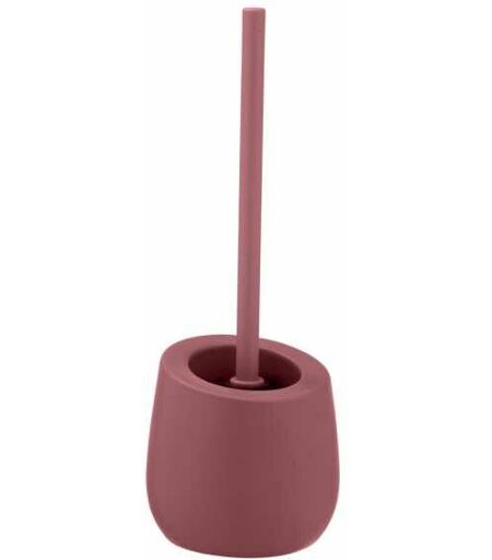 Wenko Portaspazzolino WC in ceramica Badi rosa, Spazzolino WC in silicone nero con testa in silicone Ø 7,5 cm, antiaderente, Ceramica, Ø 13,5 x 38