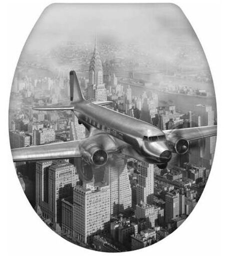 L'esclusivo sedile WC Old-Time Plane della WENKO si distingue per la sua forma ovale e porta nella stanza da bagno e nella toilette di casa un fascino nostalgico. Il dispendioso motivo dell'aeroplano d'epoca sui cieli di New York rappresentato sia sull'esterno che sull'interno del copriwater ovale e sull'asse, mette davvero in risalto la toilette. In questo modo con la chiusura integrata ammortizzata Easy-Close, la chiusura rumorosa del copriwater appartiene al passato. Il copriwater si richiude in maniera leggera e silenziosa. Il fissaggio igienico ad un pulsante Fix-Clip in acciaio permette non solo un montaggio veloce ma anche una pulizia rapida in quanto il sedile completo può essere rimosso e riattaccato in maniera semplice. Il fissaggio inoltre è regolabile in maniera flessibile e si adatta alle comuni tazze del water. I paracolpi sono forniti in dotazione. Grazie ad un ulteriore inserto gommato che viene montato insieme al fissaggio Fix-Clip sulla tazza del water, si evita che ...