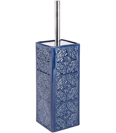 Wenko Spazzola WC in ceramica Cordoba, spazzola WC in silicone, spazzola WC nera, Ceramica, 35x9,5x9,5cm, blu scuro