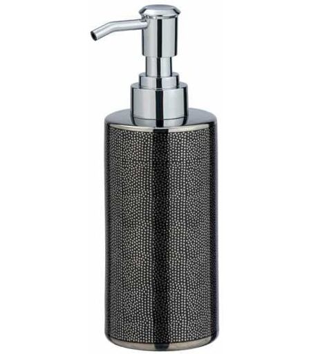 Nel segno dei tempi: Grazie al loro caratteristico stile, gli accessori per il bagno della serie Nuria valorizzano ogni bagno e conquistano con design moderni e fuori dal comune. La serie in ceramica dall'aspetto lussuoso con un brillante gioco di motivi trasforma il tuo bagno e il WC degli ospiti in un'oasi di modernità. Tutti gli accessori sono realizzati in ceramica di alta qualità con superficie strutturata e creano così un mix stravagante combinando materiali e strutture. Il delizioso distributore di sapone Nuria con finitura stravagante argento/antro può essere riempito a piacimento con un massimo di 300 ml di sapone liquido o lozione detergente. Una leggera pressione sul pulsante di dosaggio eroga la quantità desiderata di sapone o lozione. Anche in cucina, il distributore può essere perfettamente riempito con detersivo liquido e renderà il fastidioso lavaggio dei piatti un'attività più piacevole. E le vecchie e brutte bottiglie di plastica avranno fatto il loro tempo. Completa ...